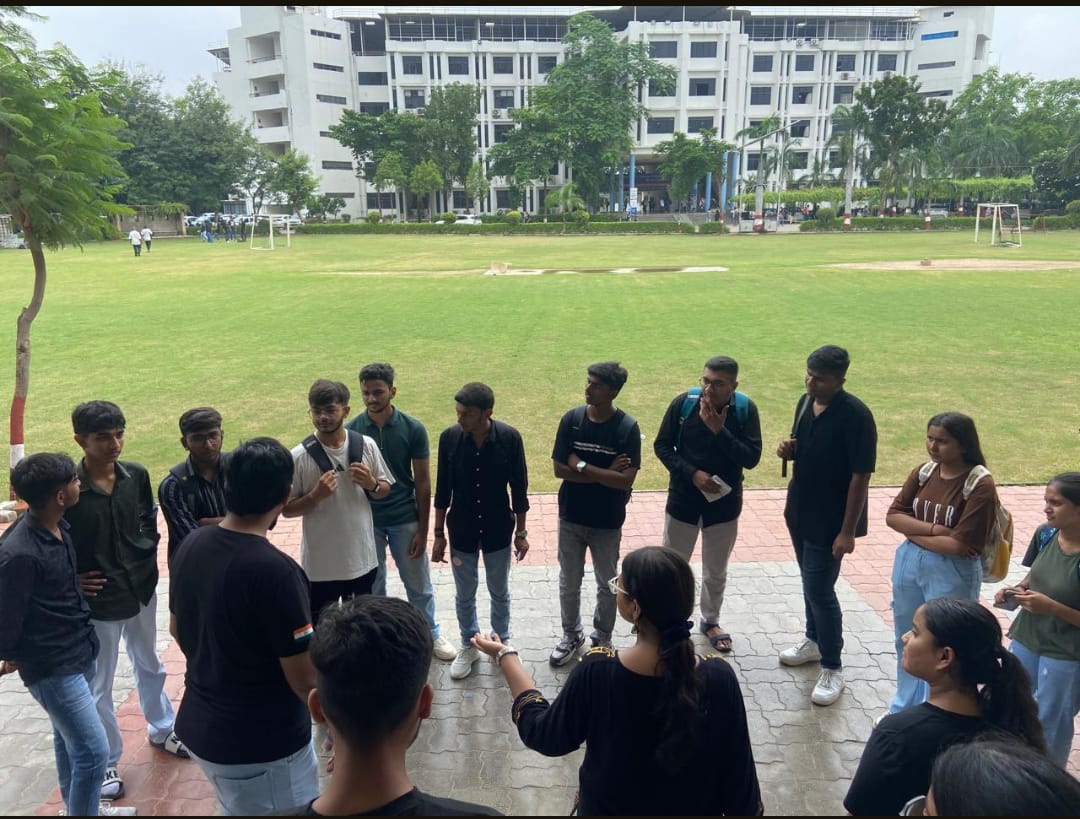 Upon reaching the spot, they had to solve puzzles or perform activities to receive the next clue. This process continued, guiding students through key areas of the campus, fostering teamwork, and building connections between the two semesters. At the end, group number 1 and 3 secured 1 st position by collecting 13 chits by solving the clue.